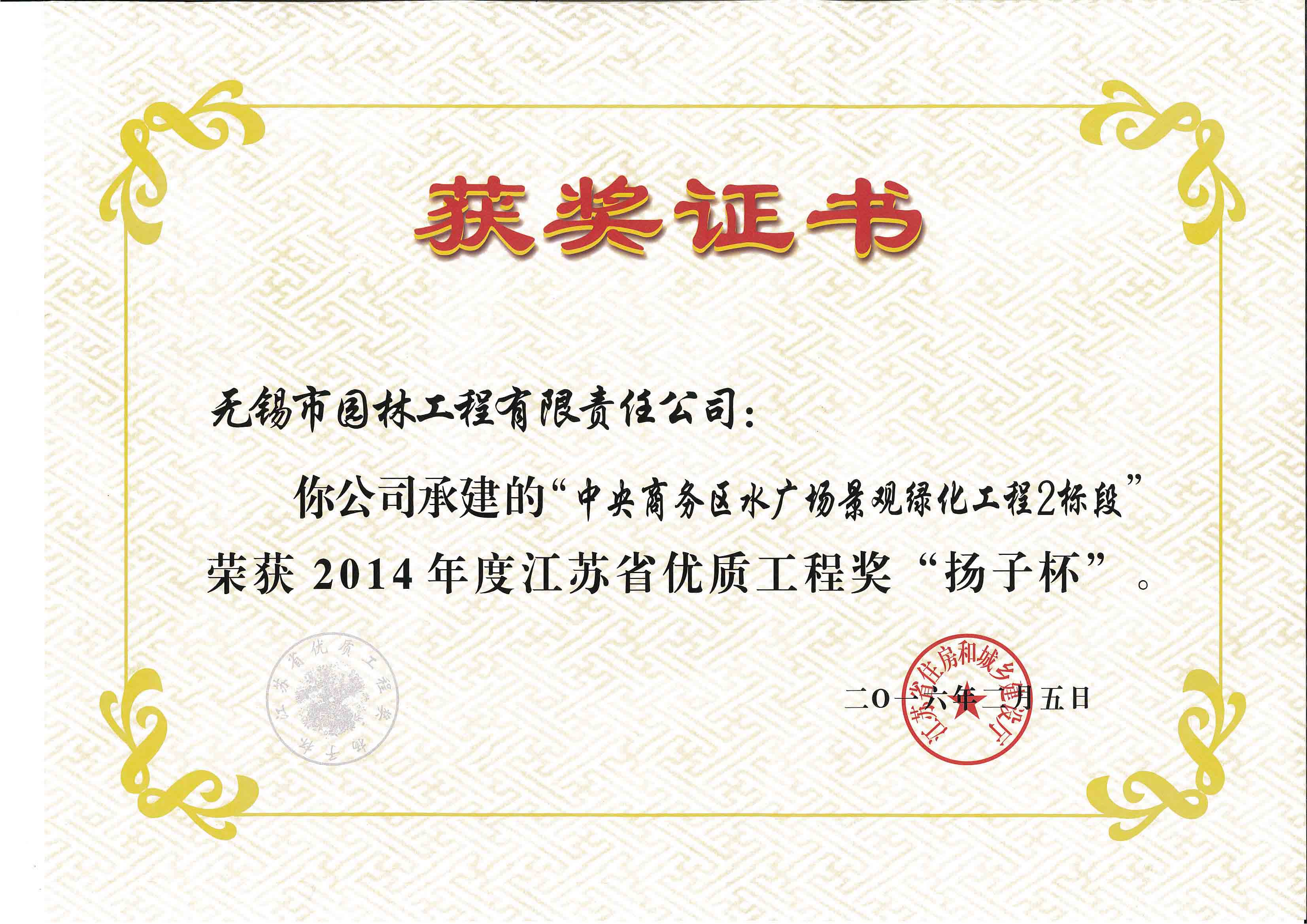 2014揚子杯——中央商務(wù)區(qū)水廣場景觀綠化工程2標(biāo)段