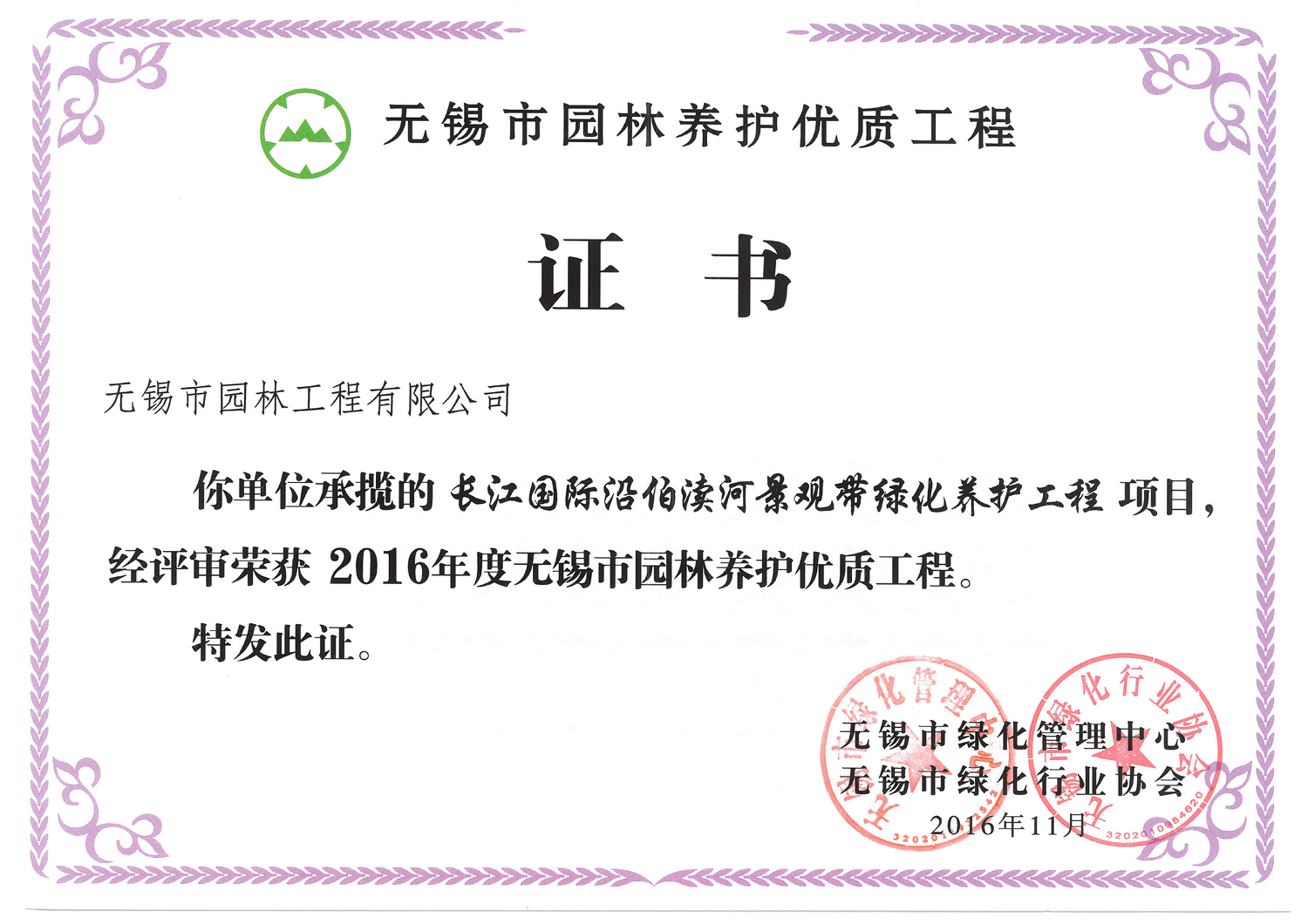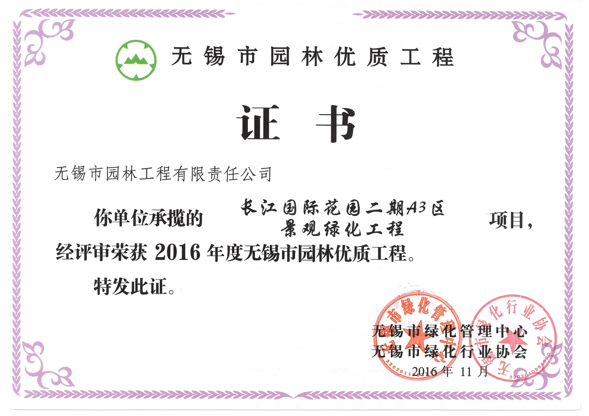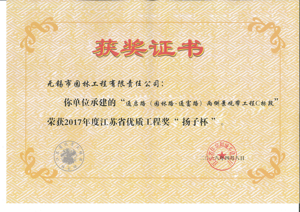 2016揚子杯——無錫地鐵1號線沿線景觀綠化工程三標(biāo)
