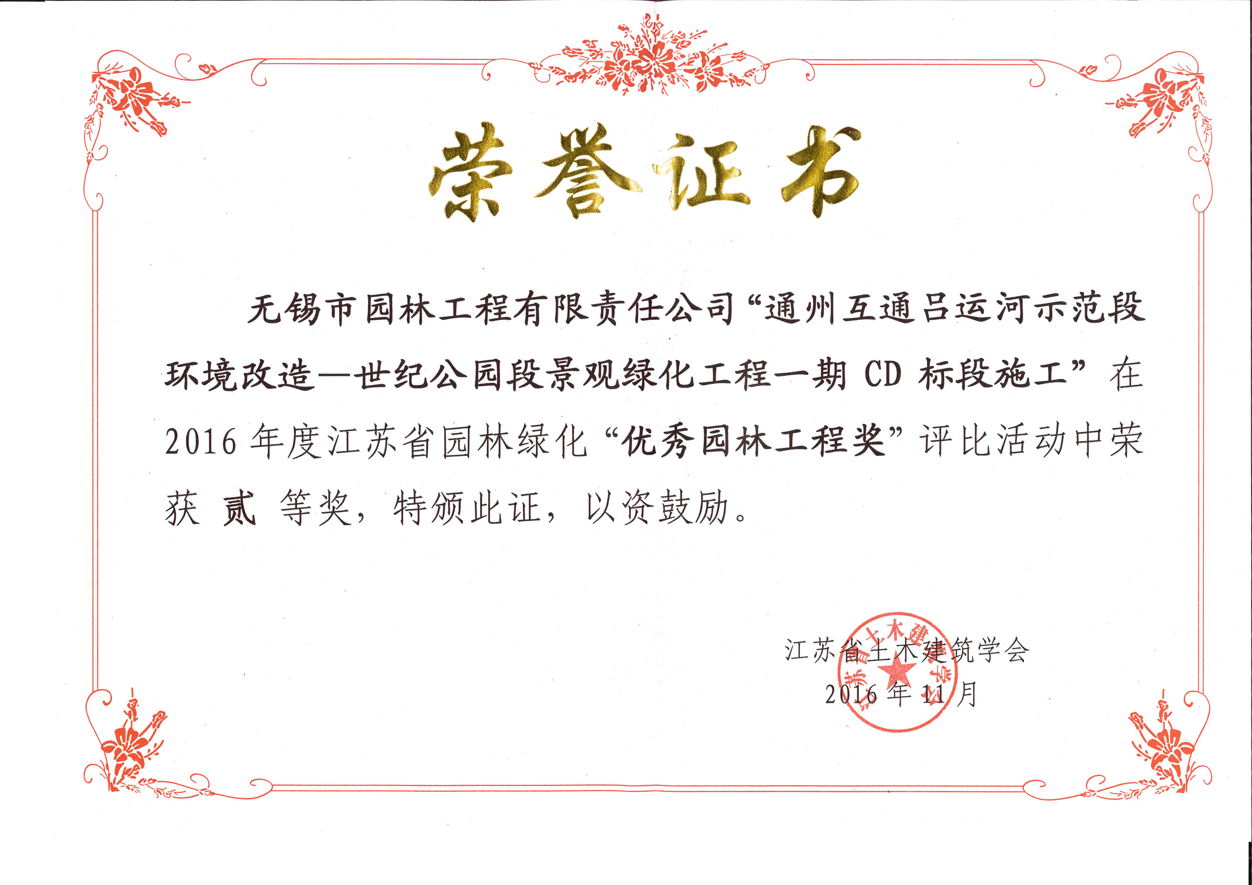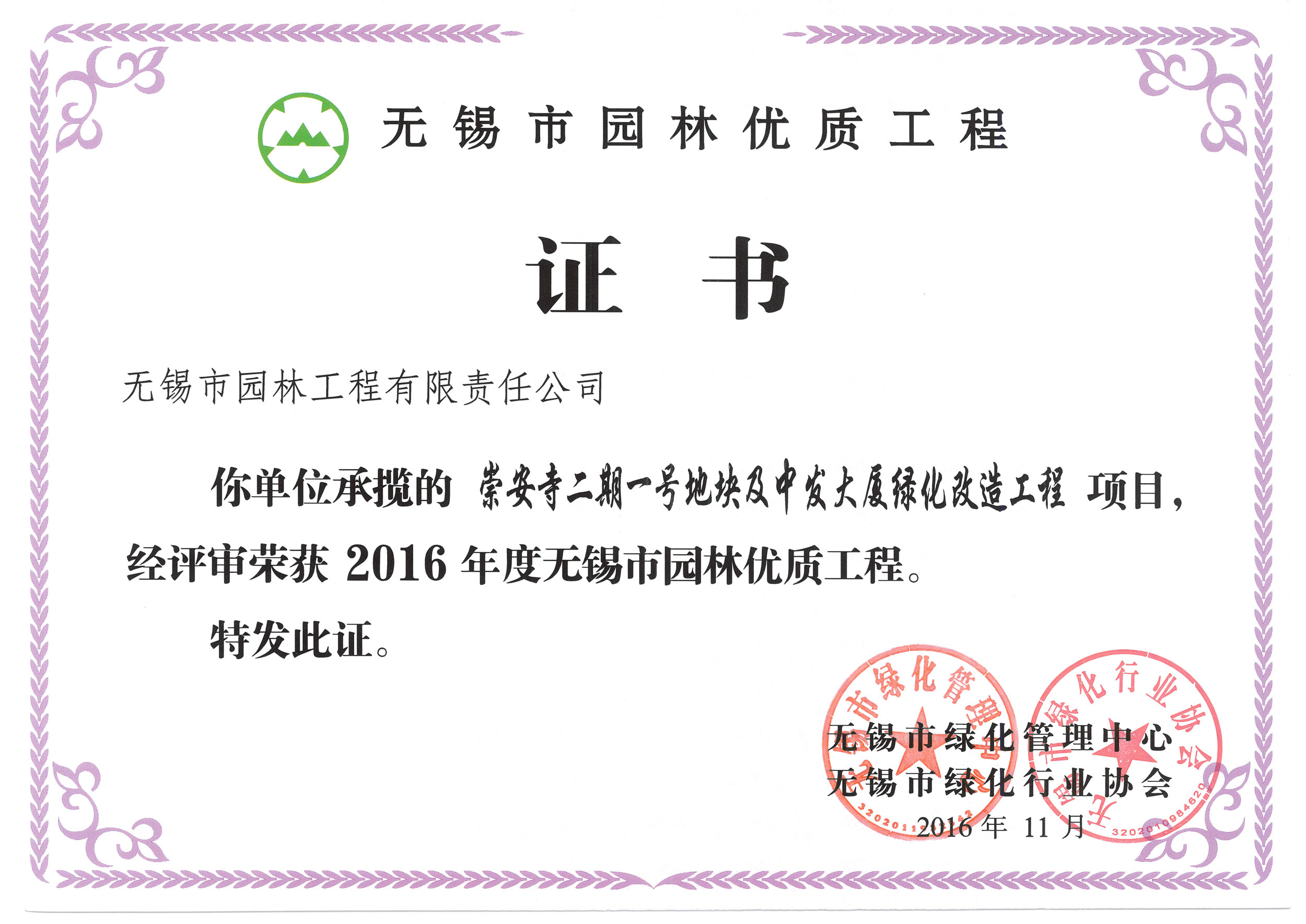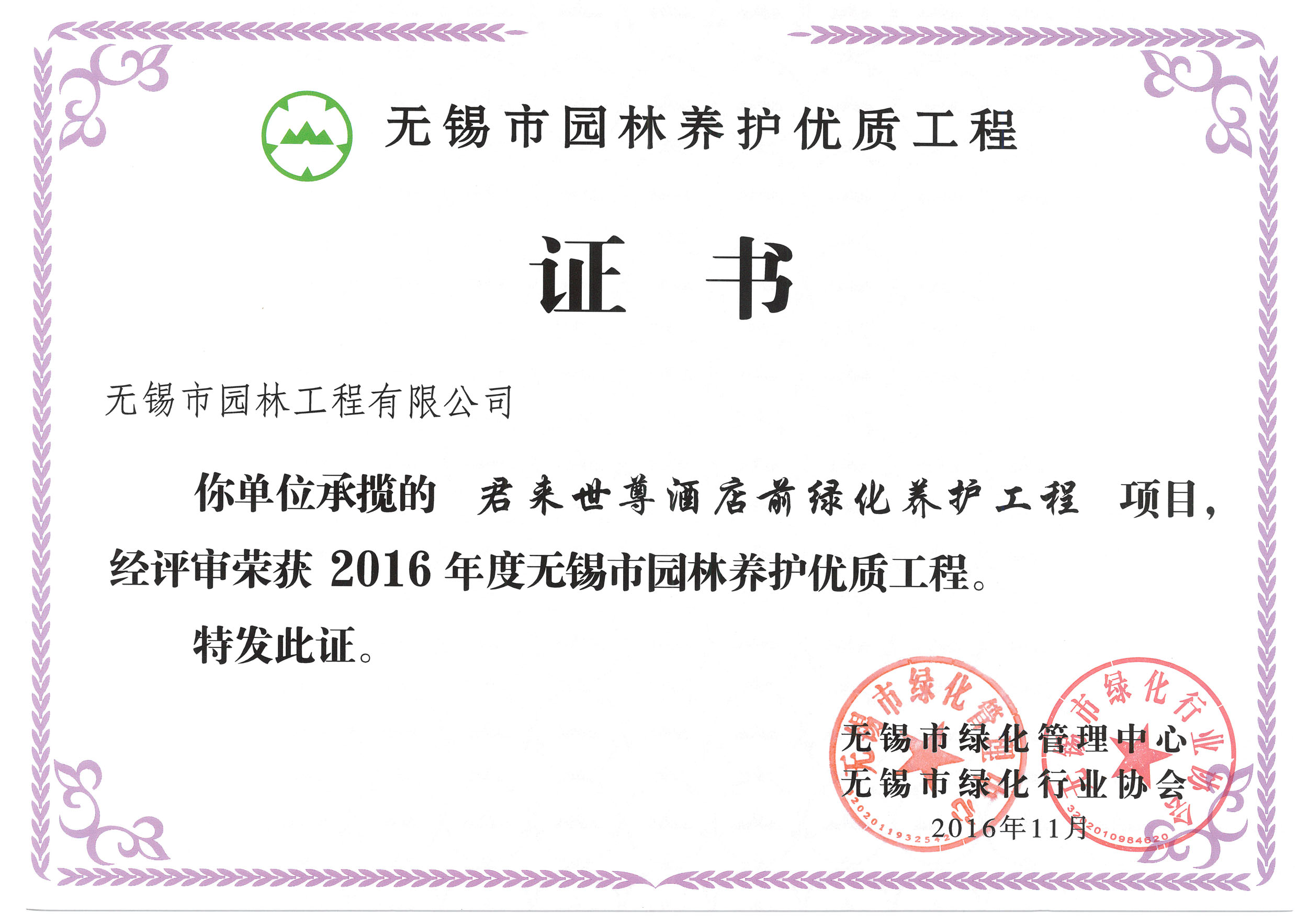2016揚子杯——無錫地鐵1號線沿線景觀綠化工程三標(biāo)